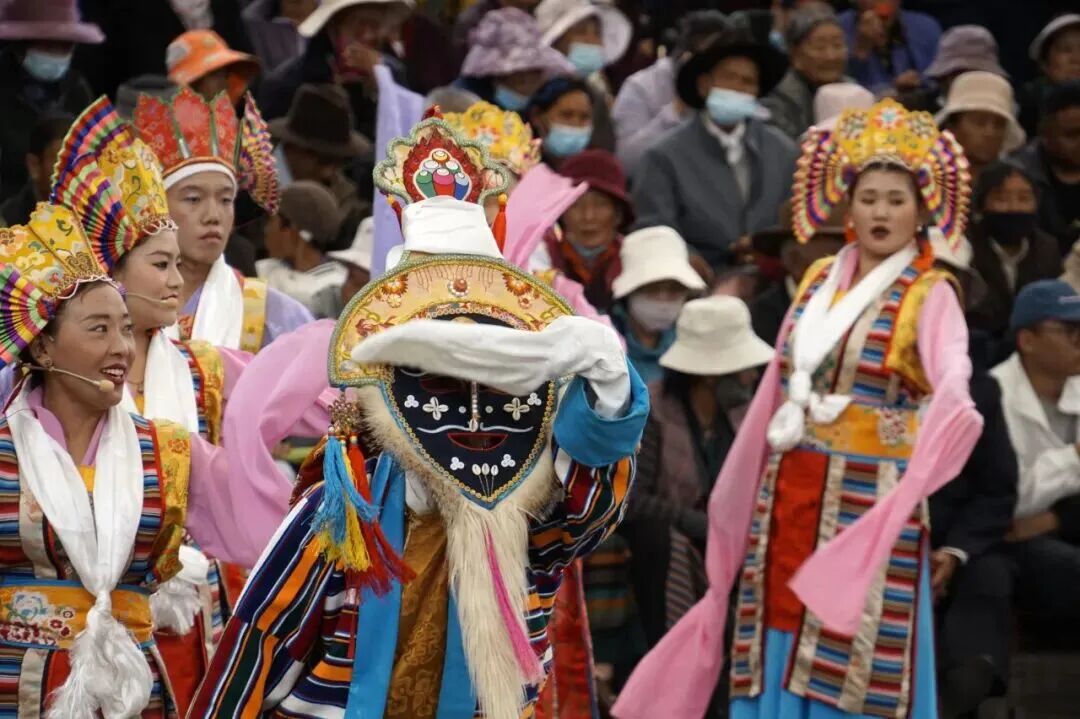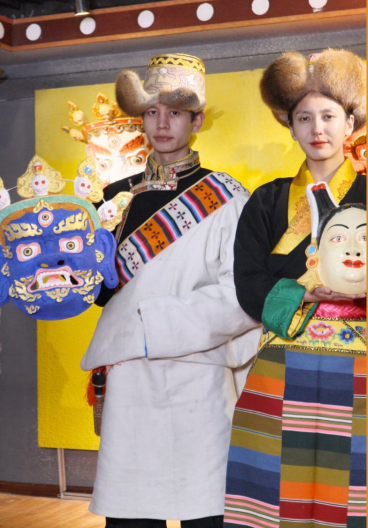 堆龙德庆区被誉为“药王故里·藏戏之乡”,这里的藏戏服饰文化浓郁。堆龙德庆区服饰展示的是开场人物“温巴”所穿的“温巴切”和仙女“拉姆”所穿的“拉姆切”,色彩绚丽,配件繁多(如“贴热”绳穗、“当杂”褂子),极具舞台感染力和艺术表现力,是藏族戏剧艺术的重要组成部分。