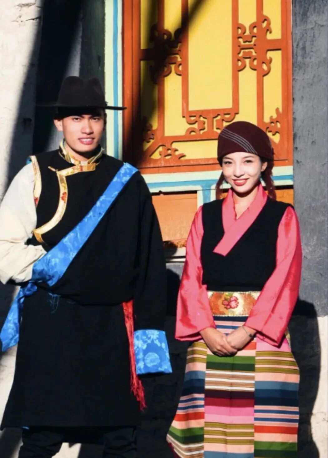 尼木县属于半农半牧区,服饰同样体现实用与朴素。男士常见的三层穿法(衬衣、镶边坎肩、氆氇袍)和女士的深色无袖袍“裘巴普美”以及为防风沙日晒佩戴的头巾,都极具地方特色,展现了人们适应自然、勤劳智慧的品格。