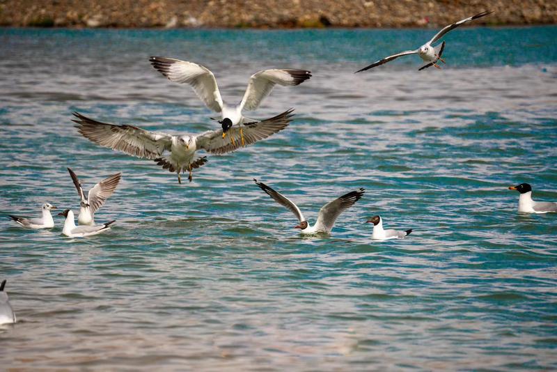 拉萨的河流湿地也同样充满生机。拉萨河畔,成群的候鸟或在清澈的水面上翩跹起舞,或在岸边嬉戏觅食,为这片宁静的雪景注入了灵动之气。从拉鲁湿地远眺,覆盖着薄雪的远景与布达拉宫遥相呼应,构成了一幅辽阔的高原冬景图。