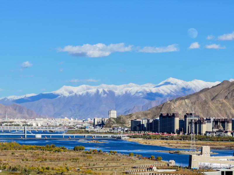 尽管空气中弥漫着冬日清晨的寒意,呼吸间带出缕缕白气,但很快,拉萨暖阳便将光与热慷慨地洒向大地。阳光照在雪上,泛起细碎的金光,也照在行人的笑脸上,驱散了寒冷。