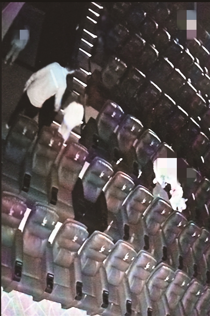 监控画面中,影院工作人员正在提醒小朋友返回座位。(图由受访者提供)